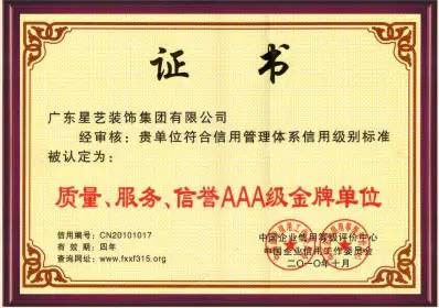 2014年质量、服务、信誉AAA级金牌单位